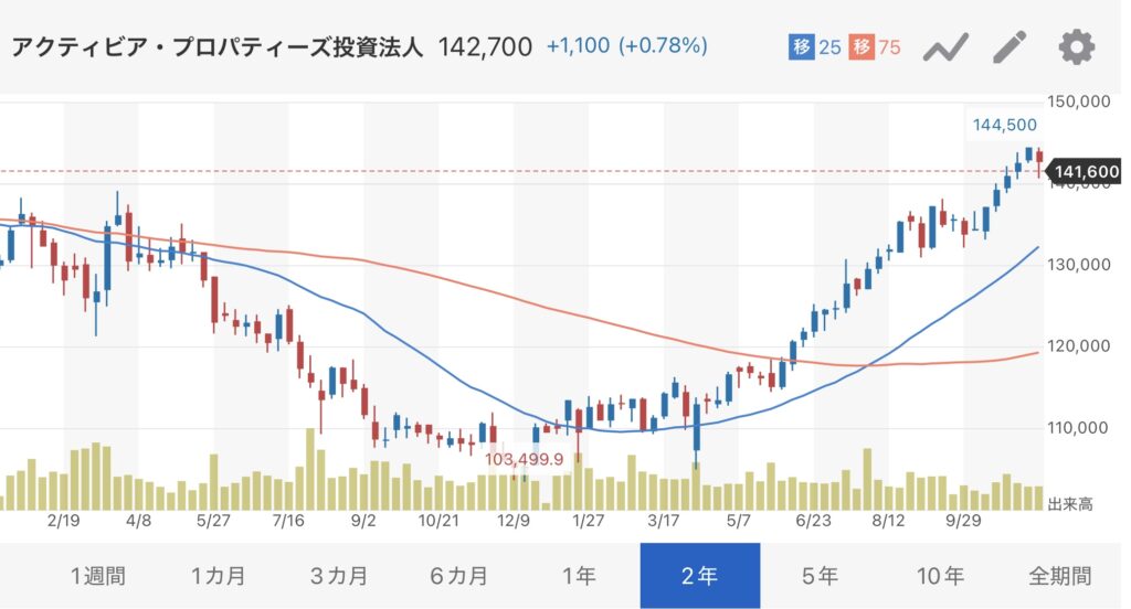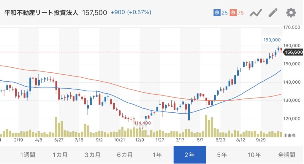 Jリート全体としては、今年は今までにない強さを見せており、ここ数年では見られなかった継続的な上昇が今なお続いています。