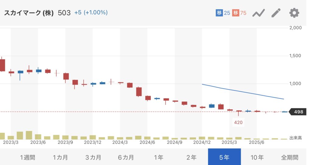 2025年は減配により高配当銘柄から転落したスカイマーク。