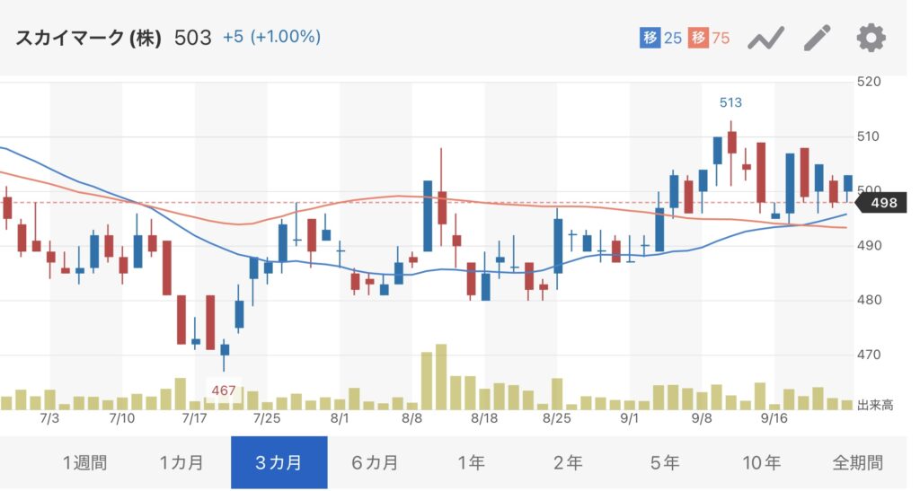株式市場が絶好調な中、低迷し続けていたスカイマークでありましたが、ここにきて少しずつ上昇しつつあります。(本当にようやくではありますが・・・)