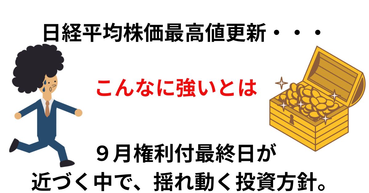 ただ、9月の権利付最終日が近づいていることから、ここは少しリスクを取ってでも保有ポジションを増やしていかなければなりません。